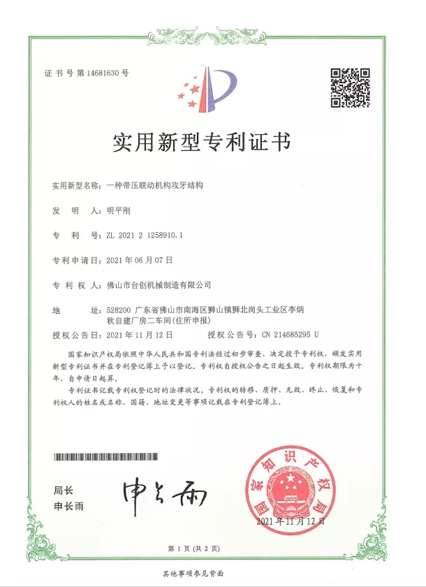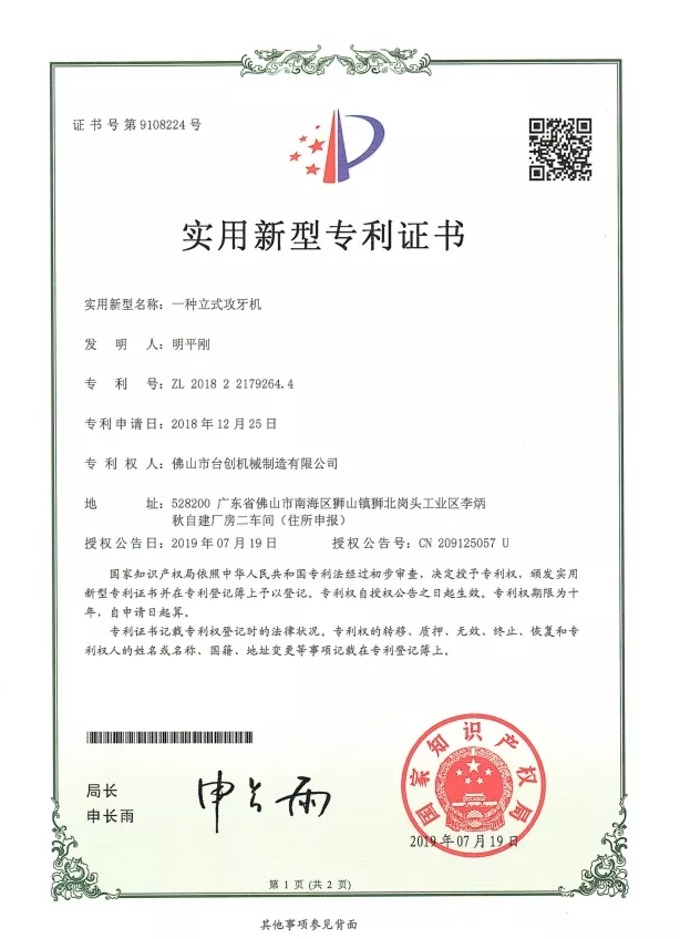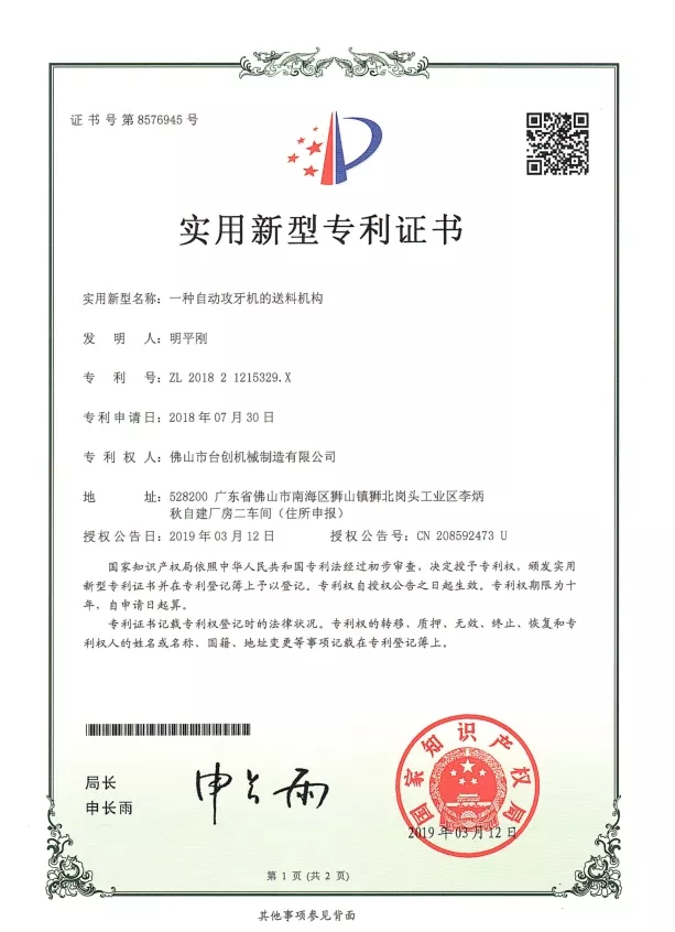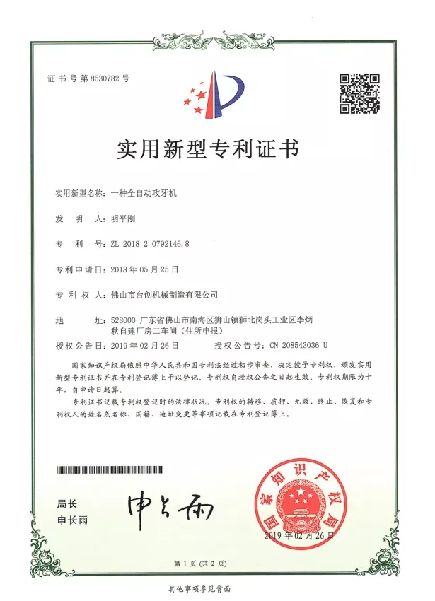 براءات الاختراع والابتكار: نحن نمتلك العديد من براءات الاختراع لتقنيات آلات التنصت على الجوز، والتي تغطي التصميم الميكانيكي وأنظمة التشغيل الآلي وحلول السلامة. يضمن البحث والتطوير المستمر أن أجهزتنا توفر دقة واستقرارًا وكفاءة عالية. يتم تطبيق الابتكار عبر أنظمة CNC، ومحركات المؤازرة، ومراقبة عزم الدوران، والتعامل التلقائي مع المواد لتلبية الاحتياجات المتطورة للتصنيع الحديث.