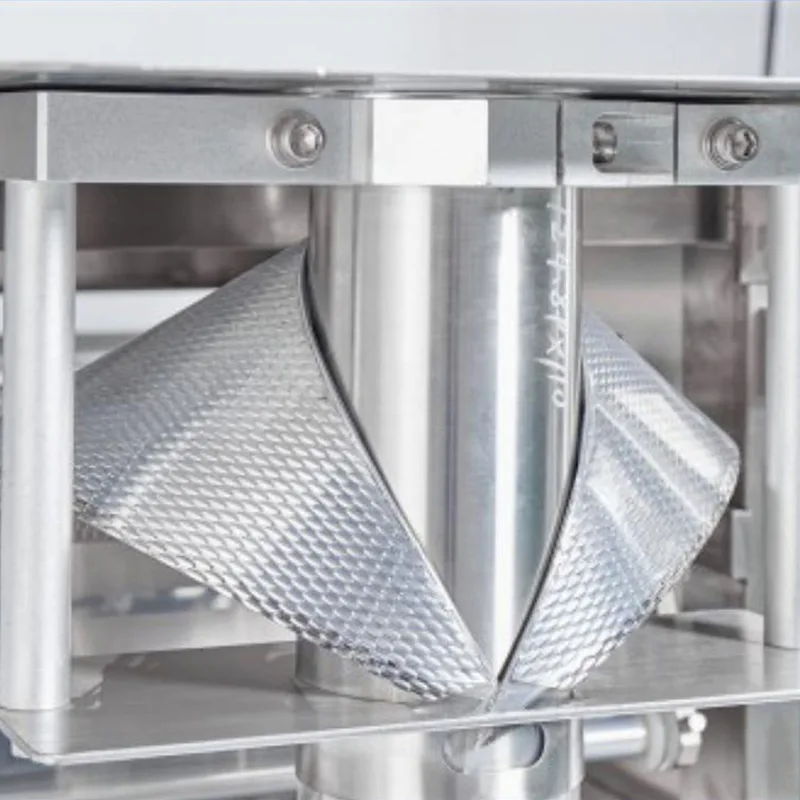 آلة التعبئة والتغليف بختم ثلاثي الجوانب تنتج أكياسًا مسطحة محكمة الغلق على ثلاث حواف، تُستخدم عادةً لتغليف الأكياس.